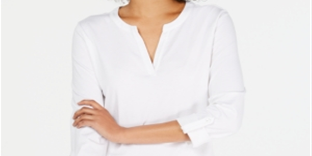 Camiseta feminina Charter Club Supima Cotton com decote dividido, branca, tamanho PSM