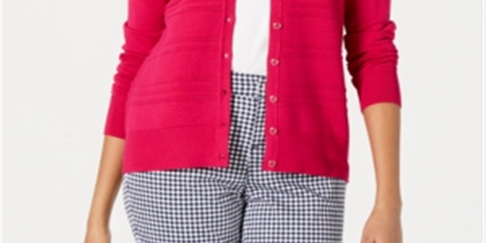 Uma das silhuetas mais confiáveis da moda | este cardigan clássico da Charter Club é estilizado com listras texturizadas para uma atualização sutil