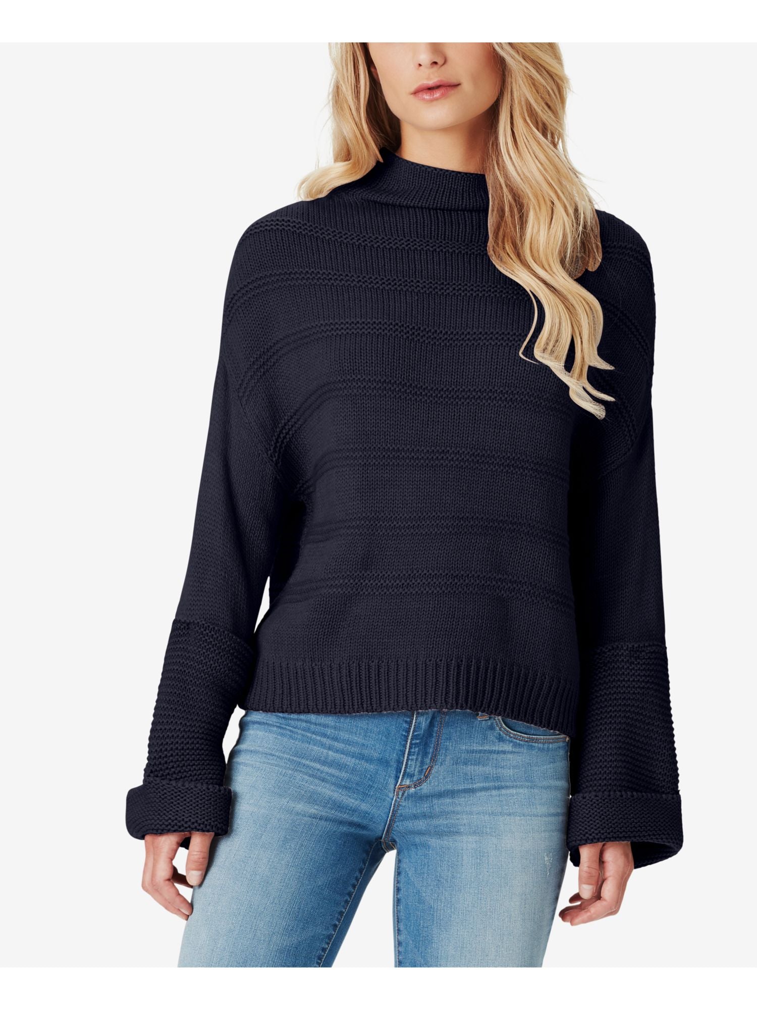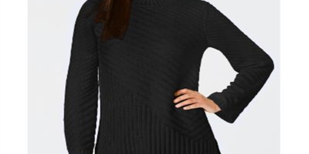Suéter feminino texturizado de manga comprida e gola alta Charter Club, preto, tamanho pequeno e pequeno