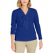 Charter Club Blusa de crepe feminina com gola amarrada, azul, tamanho pequeno grande