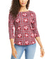 Medidas aproximadas da modelo: altura: 1,78 m; busto: 89 cm; cintura: 68 cm; quadris: 89 cm | Comprimento aproximado: 66 cm | Devido ao tamanho generoso, sugerimos um tamanho menor para um ajuste perfeito | Decote canoa | Mangas 3/4 | Todo em algodão