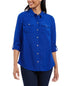 Camisa feminina Charter Club com dois bolsos, azul, tamanho médio