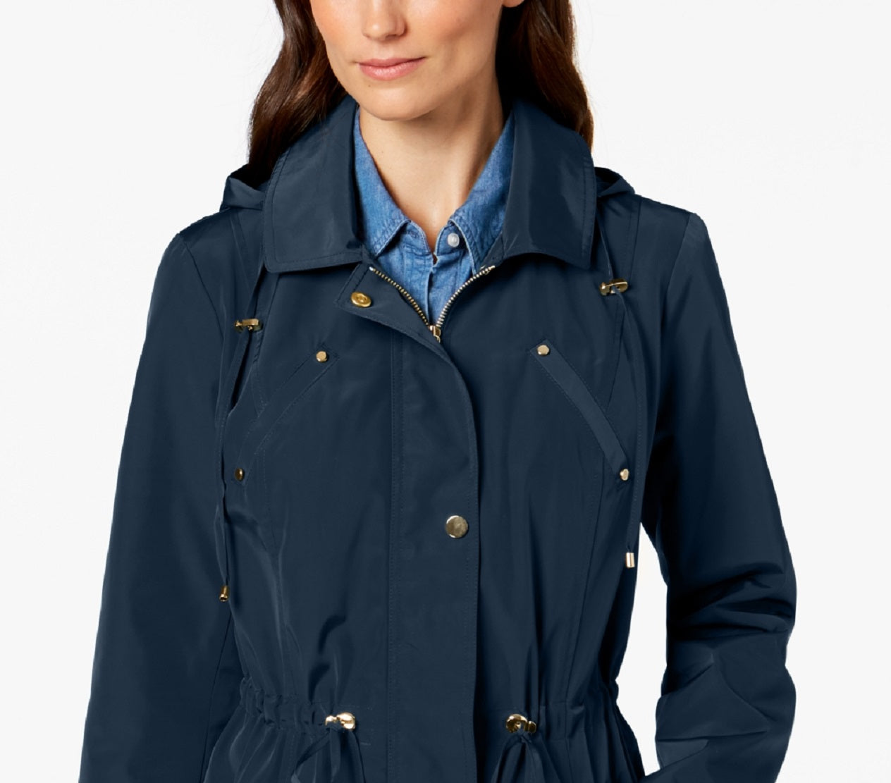 Jaqueta anoraque feminina resistente à água com capuz Charter Club, azul, tamanho XX-G