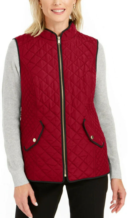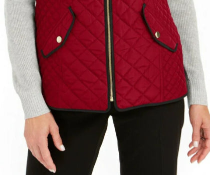 Colete feminino Charter Club de algodão acolchoado com zíper frontal, tamanho pequeno e grande, vermelho