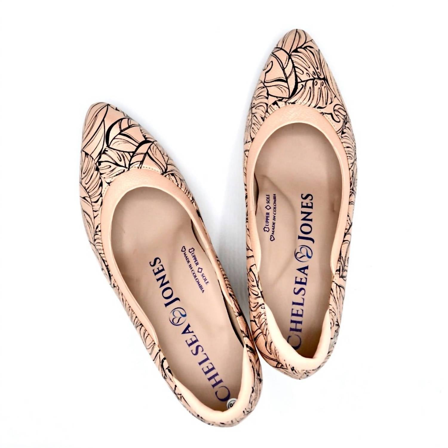 Elevate your style with the Women's Rhyme Mid Heels by Chelsea Jones, featuring a chic 2.5" tapered wood block heel in an elegant rose print leather. These almond toe shoes are crafted with a luxurious leather upper and lining, ensuring a comfortable fit with a slight point for roomy toes. Designed with a JONESOLE™ 5mm flexpad rubber sole and cushioned lycra around the back and front opening, they offer superb shock absorption and a quiet, graceful stride. Made in Colombia, these heels blend practicality with quiet luxury, perfect for summer engagements.