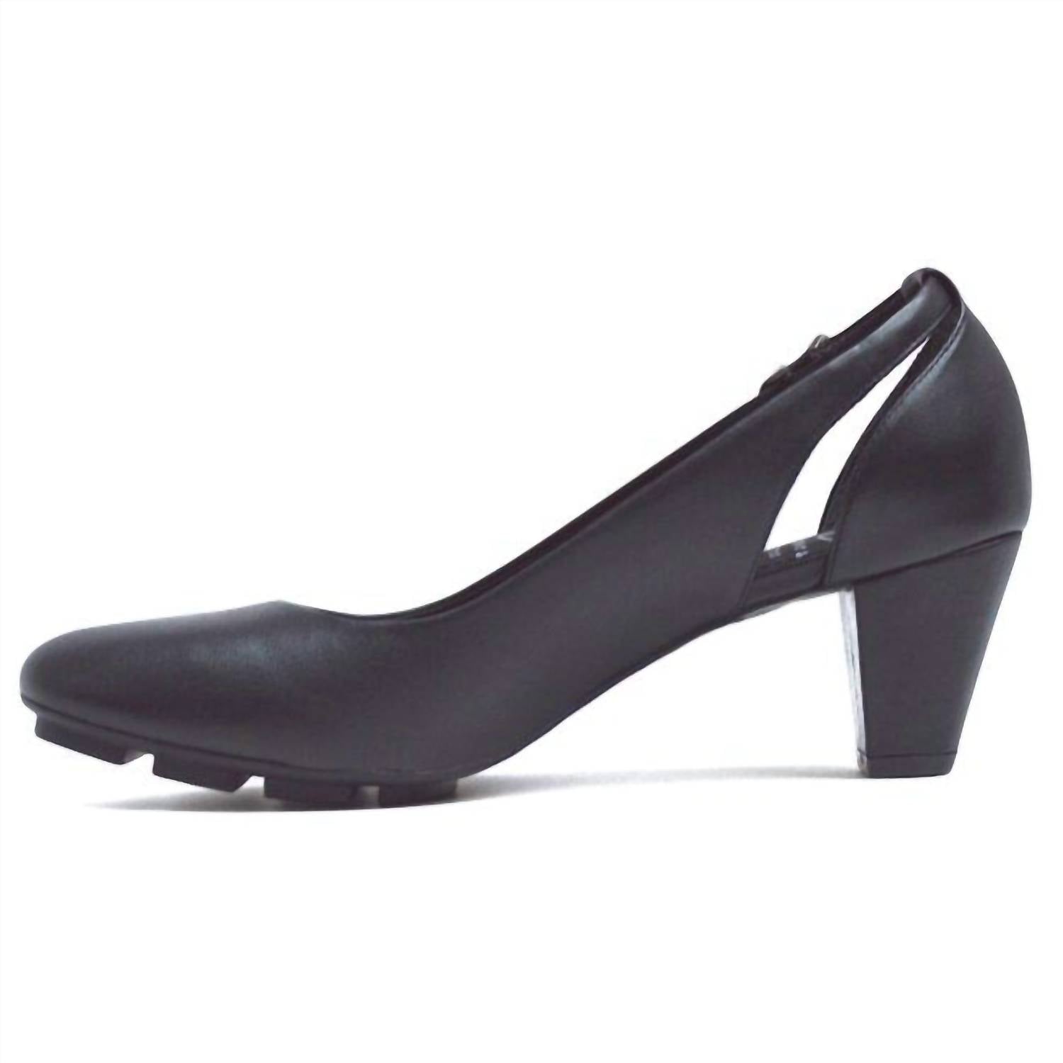 Step into sophistication with the Women's Slim Mid Heels by Chelsea Jones, offering a perfect blend of comfort and style. Crafted with a leather upper and a sleek black finish, these heels are tailored for any formal occasion, especially an engagement. The adjustable side buckle ensures a perfect fit, while the 2 1/4” block heel and 5mm flexible rubber sole promise ease of wear. Designed with innovative foam cushioning and pocketed stitching, these heels are proudly made in Brazil.