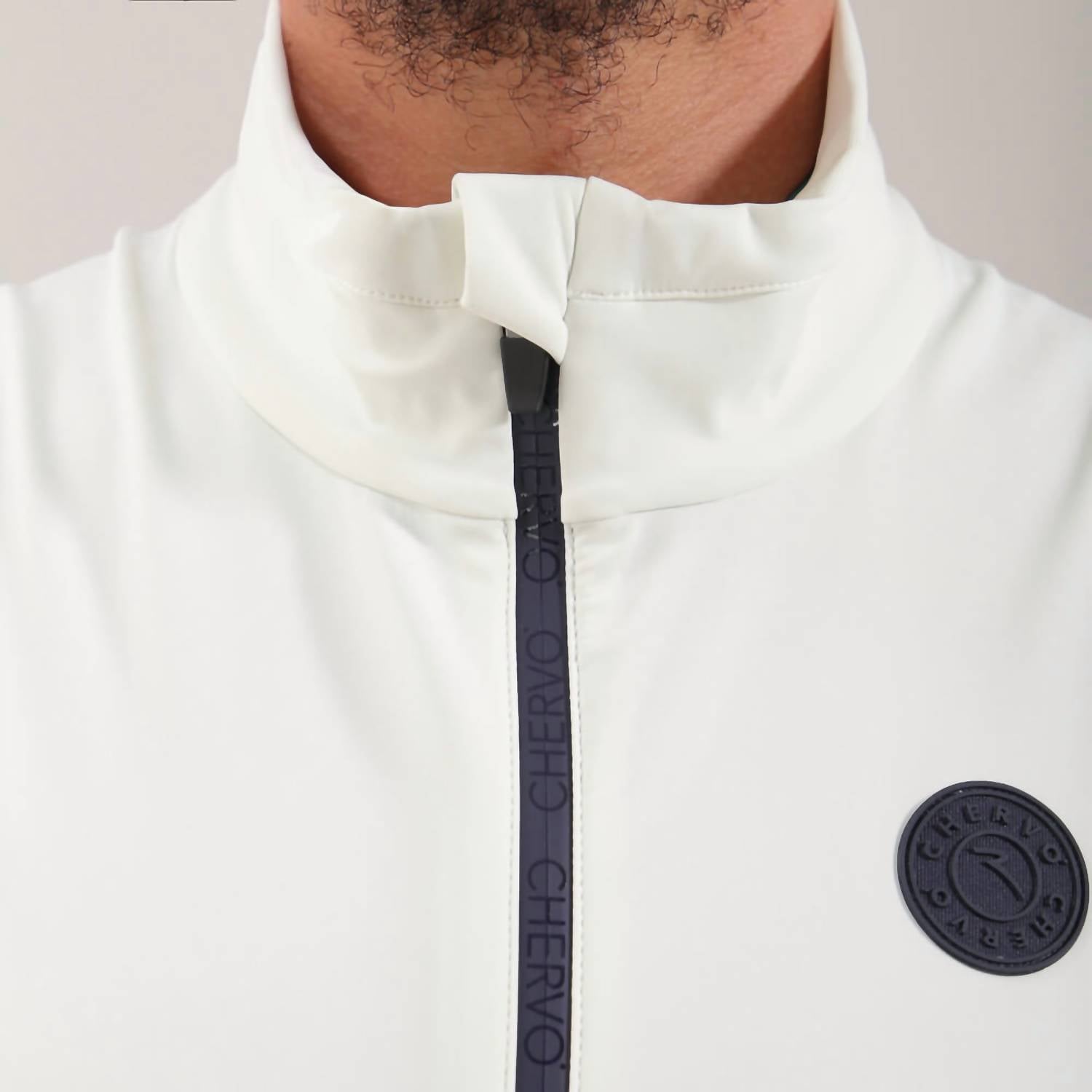 Introducing the Everyday Pro-Therm Super Stretch Vest by Chervò USA, designed for men in a sophisticated Frosting Cream hue. This vest showcases Pro-Therm® technology in a three-state thermo softshell for the ultimate in comfort and elasticity. Crafted with 96% Polyamide and 4% Elastane, it features a micro-enlated waterproof central zip with a double slider and side pockets with invisible zippers for sleek storage. It's recommended not to use softeners or dry clean to maintain the quality of the garment.