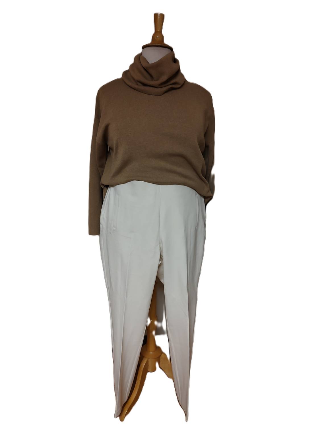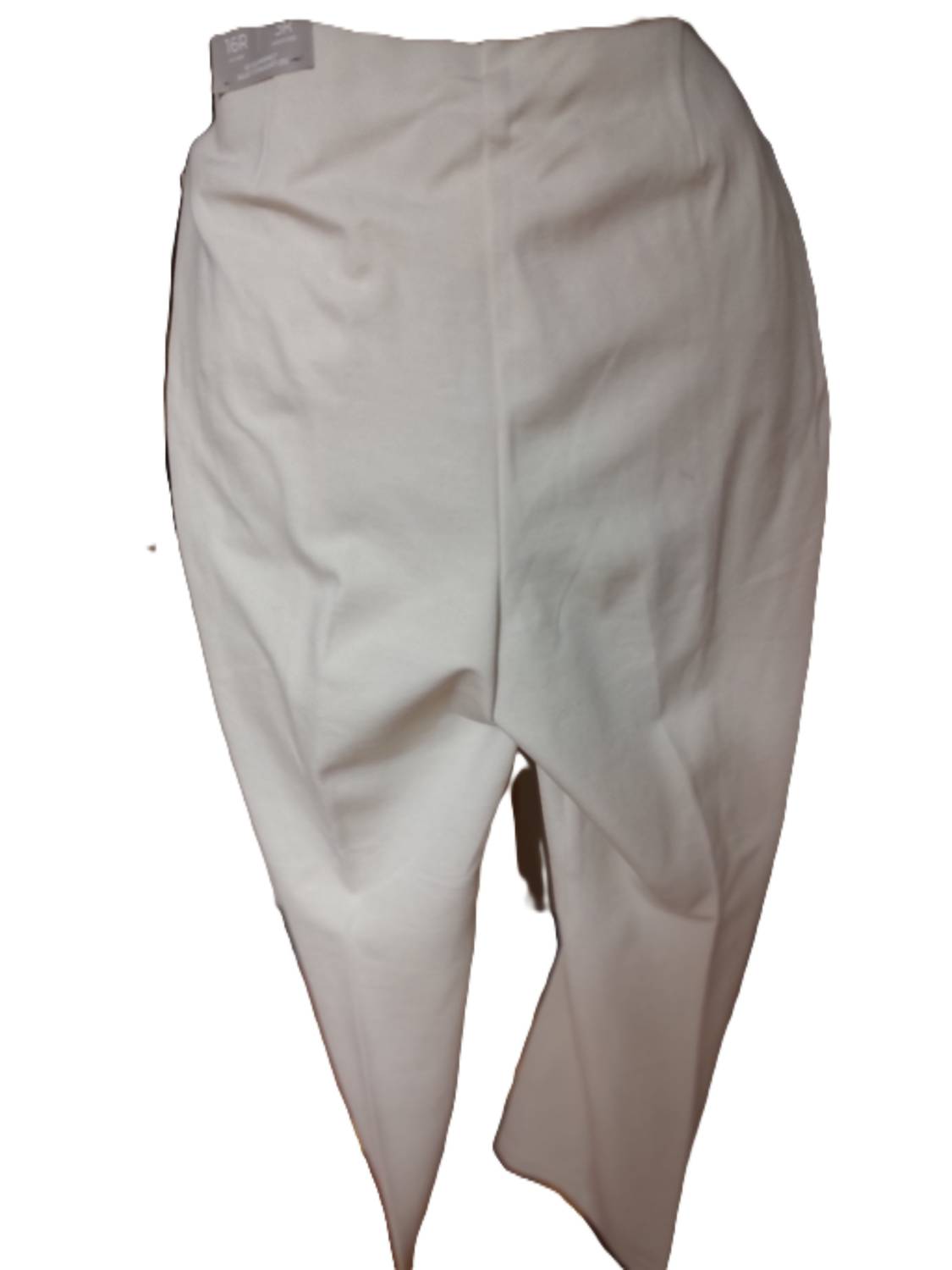 These ankle pants are made from a knit blend of rayon, nylon, and spandex that provides stretch and a contoured fit. They feature a straight-leg design in solid beige, suitable for both casual and business wear. They are machine washable and designed to create a slimming look, ideal for fall, spring, and summer.