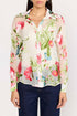 Confeccionado em seda queimada luxuosa, o Top Rosario em Monarch Ivory é uma blusa de botões sofisticada. Esta estampa destaca os tons primaveris, adicionando uma elegância feminina e extravagante ao seu guarda-roupa de primavera. Este top possui gola e fecho com botões de madrepérola na carcela frontal e nos punhos das mangas. É complementado por uma camisola elástica.
