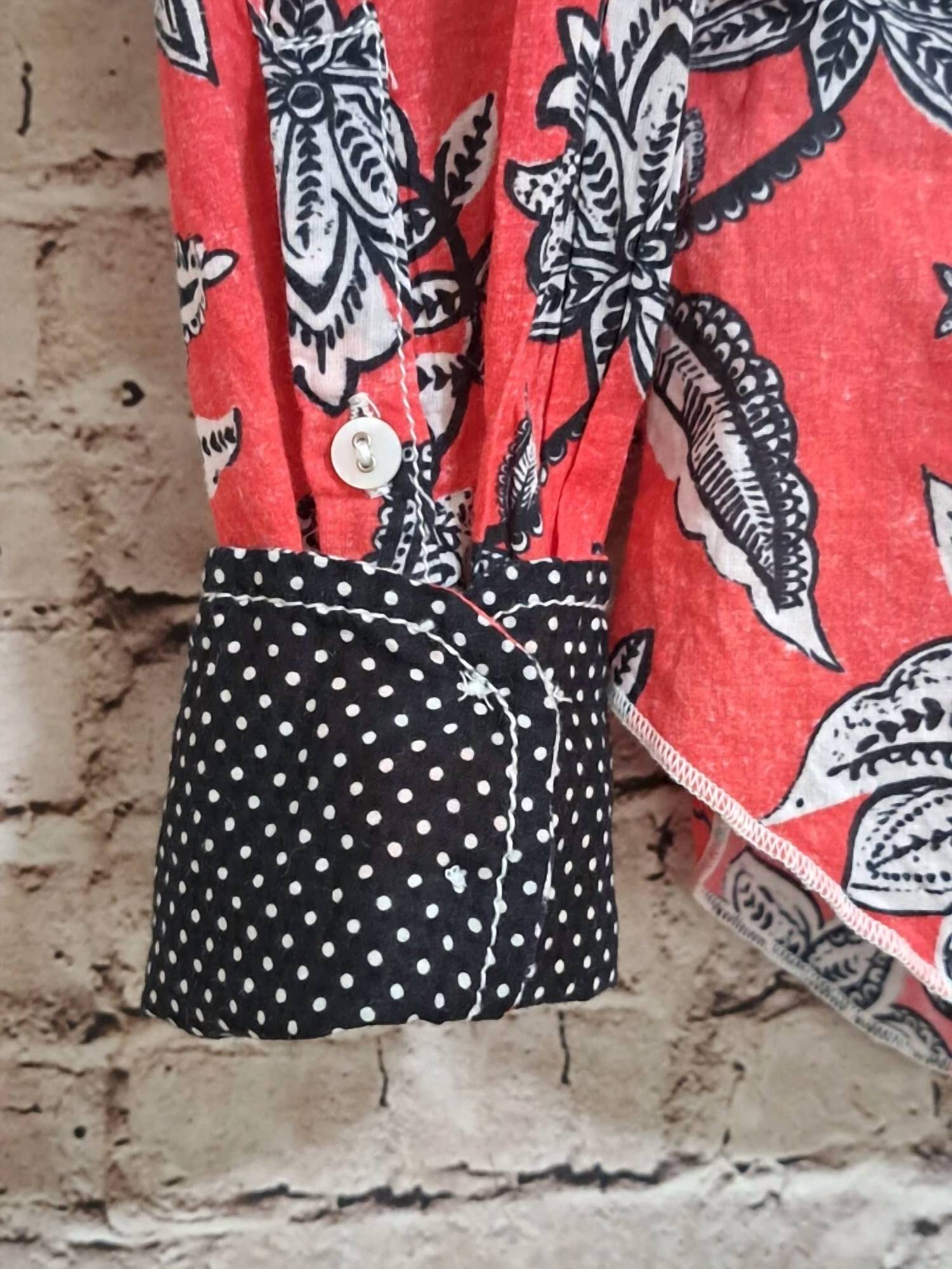 Elevate your wardrobe with the Cino Women's Floral Long Sleeve Button Up Shirt, a stylish option in vibrant red for any holiday party. This boho chic shirt is crafted from cotton with a collar neckline and long sleeves, perfect for the spring season. Closure: Button Closure. Care instructions include machine wash and line dry for effortless maintenance.