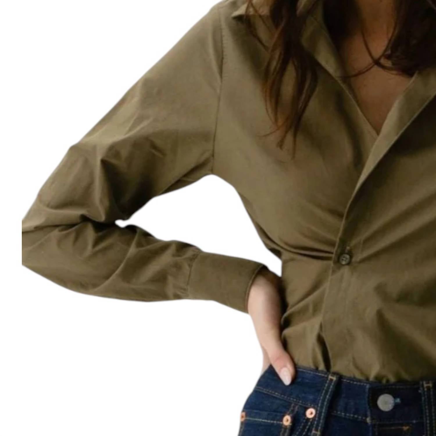 This button down shirt is comfortable yet polished. Presenting the CISSA Fitted Paper Cotton Solids Shirt, a chic addition to any wardrobe with its classic army hue. Designed with long sleeves and crafted from 100% woven cotton, this shirt offers both comfort and style, perfect for a workwear trend. Featuring a button closure, it's tailored to fit true to size with no pockets, ideal for a sleek look. For care, simply machine wash and line dry to maintain its quality.