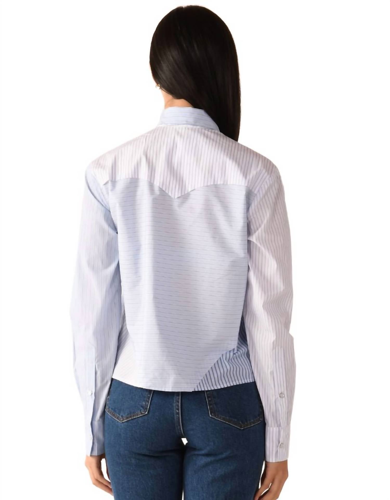 Elevate your wardrobe with the Raw Edge Western Shirt by CISSA, a brand known for merging timeless design with modern flair. This women’s long sleeve shirt in Stripe Scrappy features a classic collar and a button closure, offering a fresh take on the traditional button-down. Crafted for a versatile workwear trend, it is ideal for fall engagements and pairs seamlessly with any ensemble. Care for this stylish piece by opting for dry cleaning to maintain its crisp, elegant look.