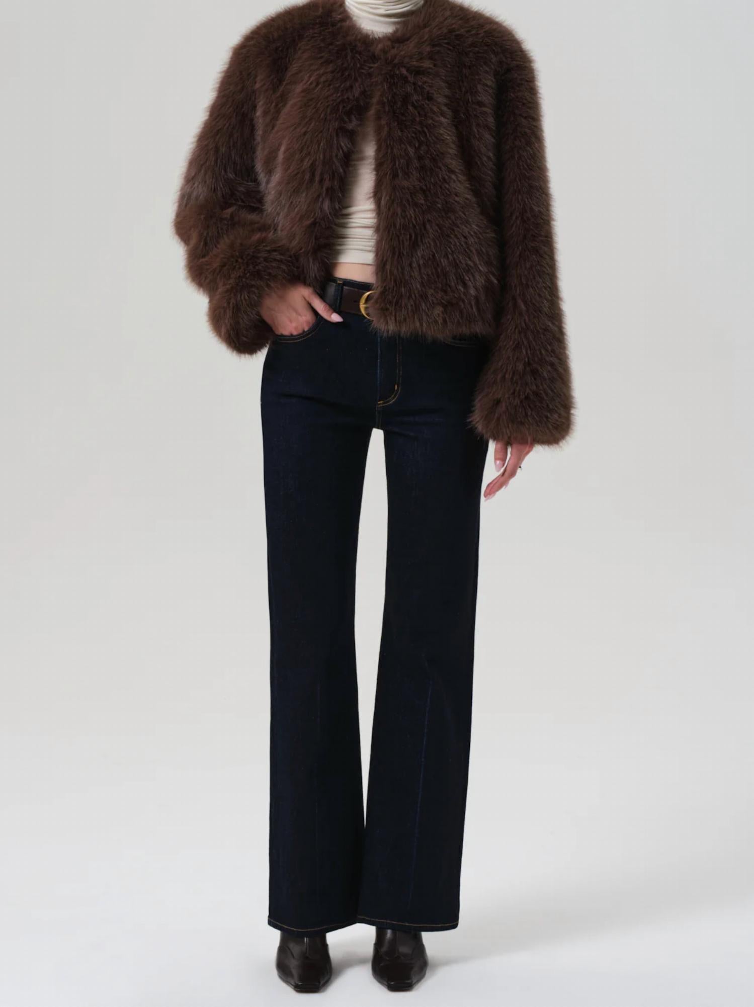Wrap yourself in elegance with the Esme Ultra Soft Jacket by Citizens of Humanity, a defining piece in the realm of winter women's fashion. This Teddy Jacket in a sophisticated HONEY hue features luxurious long sleeves and a V-neck, crafted entirely from plush, textured polyester. Designed without pockets for a sleeker appearance, it offers a pull-on closure for effortless wear. Made in Vietnam, it embodies the quiet luxury trend perfect for engagement occasions.