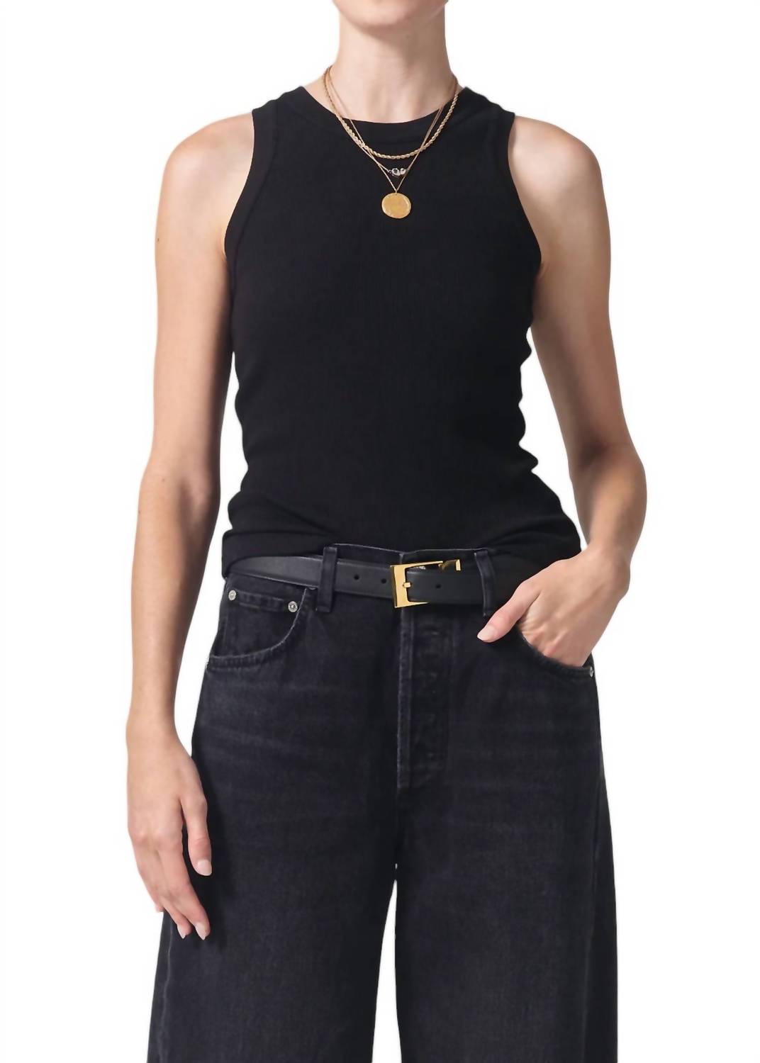 Descubra a Regata Isabel Rib da Citizens of Humanity, uma peça essencial, justa e sem mangas, criada para mulheres com estilos de vida ativos. Com gola careca e fecho pull-on, esta regata é habilmente composta por 49% Tencel Lyocell, 49% algodão orgânico e 2% elastano, garantindo respirabilidade e elasticidade para o máximo conforto. Seu padrão texturizado e estilo nadador a tornam perfeita para usar em camadas ou para se destacar sozinha. Com seu design versátil e materiais premium, é um complemento ideal para qualquer guarda-roupa.