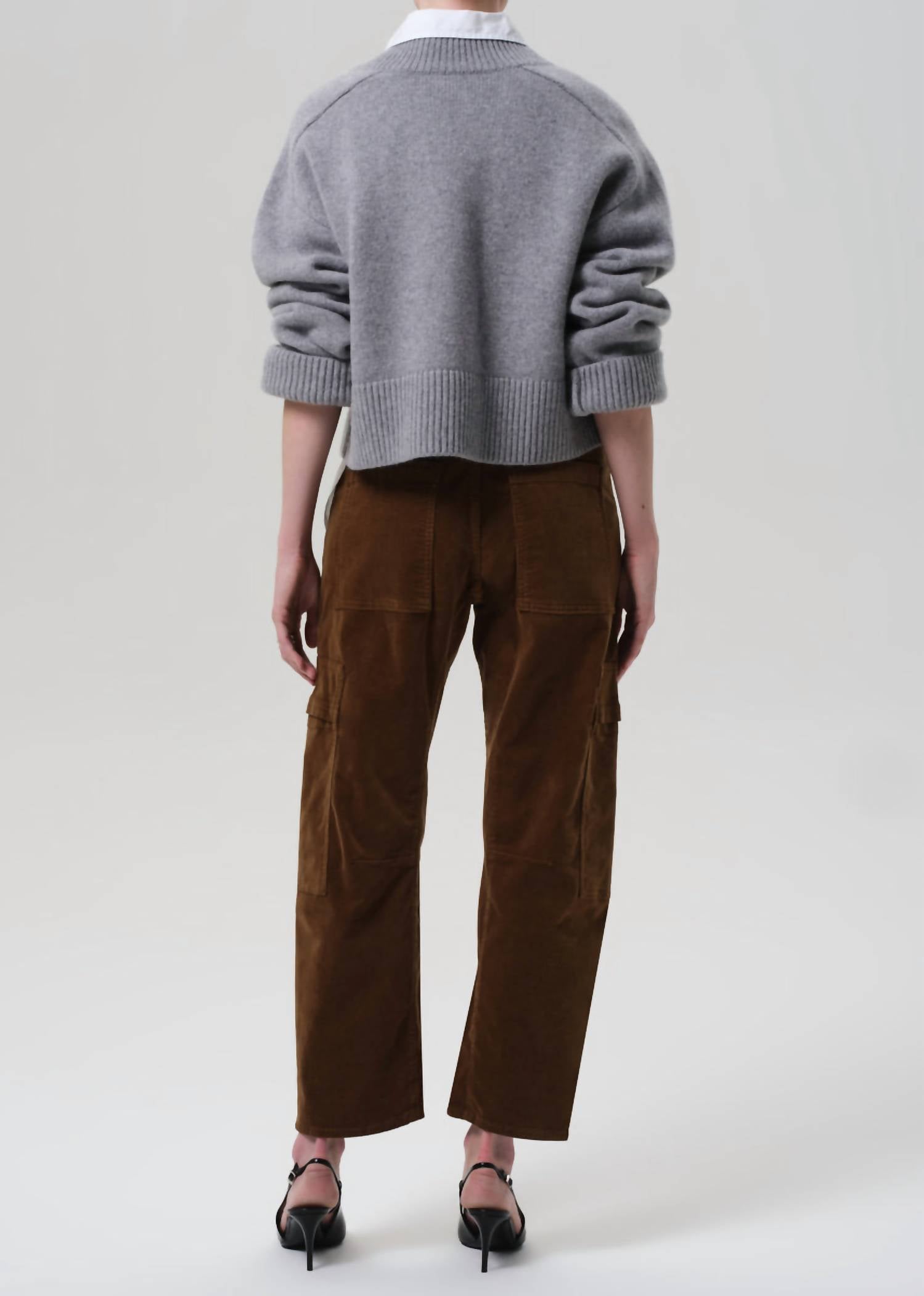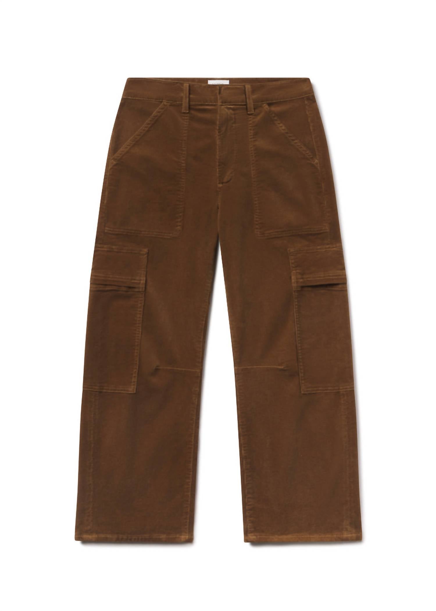The Marcelle High Rise Cargo Pants by Citizens of Humanity bring a vintage charm with a modern utility twist. Made from soft stretch baby corduroy, these pants offer a high rise and regular fit in a stylish straight leg design. The cargo-style pockets and pull-on closure complement the solid Manuka color, delivering both structure and ease, while the rich bronze hue adds an earthy feel. Ideal for fall outings, these pants are machine washable and can be tumble dried for convenience.