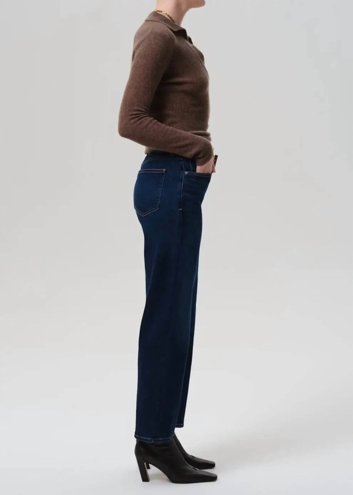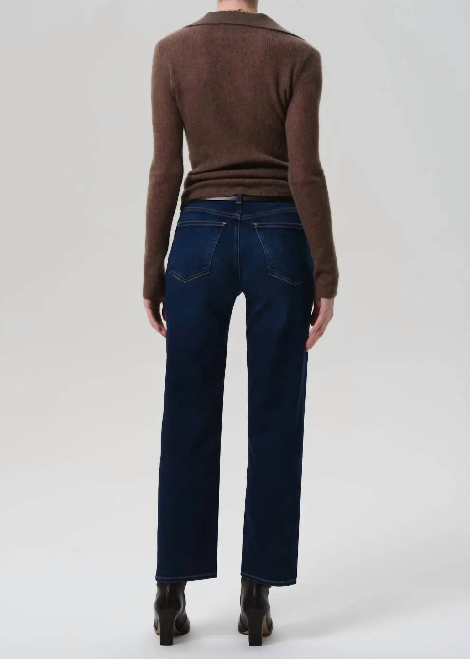 Introducing the Palma High-rise Straight Leg Jeans by Citizens of Humanity, designed for both polish and comfort in the Dakota dark wash. These jeans feature a mid-rise slim fit with a straight leg, crafted from soft stretch denim composed of 81% cotton, 11% lyocell, 6% polyester, and 2% elastane. Perfect for various occasions, its clean hem and solid pattern make it versatile for dressing up or down. Closure: Zip closure. Care: Machine wash, tumble dry. Ideal for enjoying workwear style during spring or at evening events like Thanksgiving.