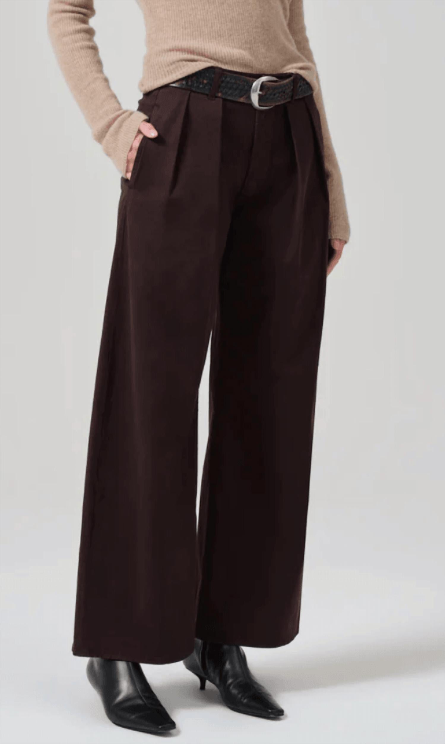 Apresentamos a Calça Plissada Petra da Citizens of Humanity, uma peça de cintura alta na elegante cor Clove, perfeita para um look sofisticado. Desenhada com um caimento relaxado, esta calça apresenta pregas habilmente posicionadas e um corte relaxado, com fecho de zíper. Confeccionada em sarja elástica leve composta por 97% algodão e 3% elastano, a peça tem 34 cm de altura, 81 cm de costura interna e 60 cm de abertura das pernas. Fabricada na Turquia, esta peça essencial do guarda-roupa é ideal para lavagem à máquina com água fria, do avesso, e secagem em temperatura baixa. A modelo tem 1,78 m e veste tamanho 27.
