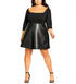 O vestido mais ousado que você terá nesta temporada. Sinta-se confiante e ousada com o Vestido Porta de Correr da City Chic. | Comprimento aproximado: 89 cm | Decote redondo; modelagem ajustada e ampla | Fecho de zíper lateral oculto | Mangas cotovelo | Costuras que modelam o busto; saia curta de couro sintético; corpete elástico estilo ponte