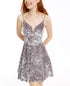 Vestido City Studios Juniors Glitter Crushed Velvet Fit & Flare Cinza Tamanho 3