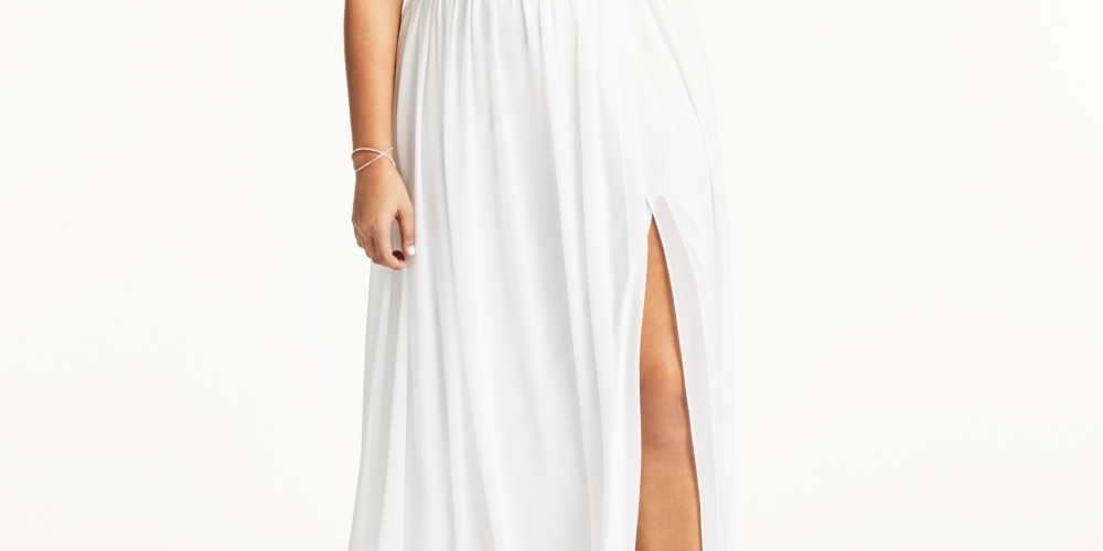 Aproximadamente 152 cm de comprimento, do centro do pescoço até a bainha. O comprimento varia 6 mm entre os tamanhos. | Decote redondo; silhueta de vestido | Fechamento por zíper nas costas; abertura com fecho de colchete | Blusa popover com glitter e renda e detalhe em tela; saia envelope com fenda frontal | Blusa de renda: náilon/poliéster/elastano; saia: náilon/elastano; forro: poliéster