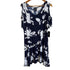 Apresentamos o Vestido Floral com Ombros Rebaixados e Decote Redondo da Clara Sun Woo, um minivestido estiloso, criado especialmente para mulheres. Com mangas curtas e ombros vazados e decote redondo, este vestido reto apresenta uma estampa floral marcante em azul-marinho e branco. Fabricado nos EUA, sua composição inclui 70% poliéster, 20% rayon e 10% elastano, oferecendo um caimento confortável com fecho pull-on. Para cuidados, lave na máquina e deixe secar na horizontal.