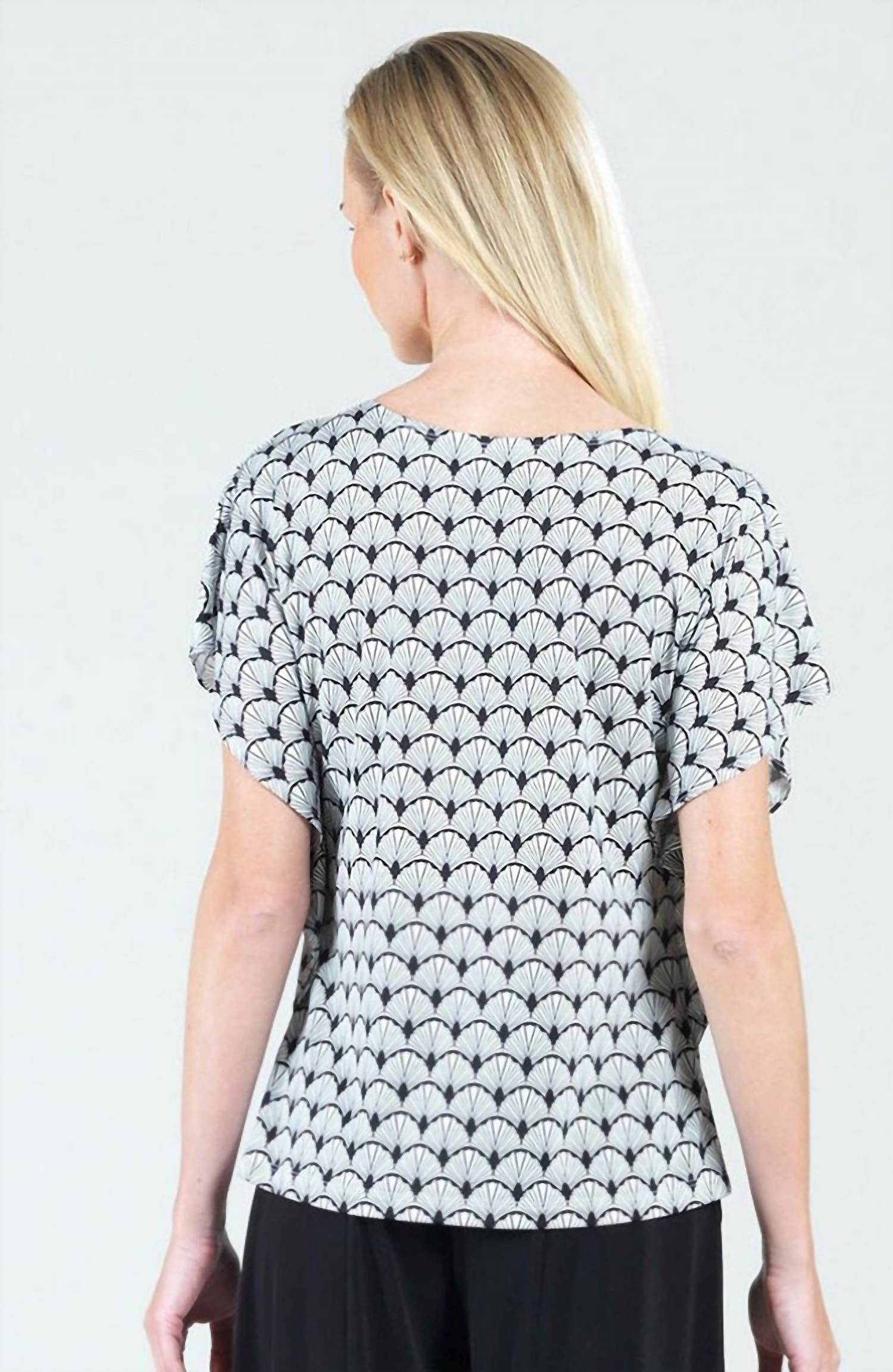 This women's blouse showcases short flowing butterfly caftan sleeves and a scoop neckline, crafted from an ultra-lightweight knit fabric with a breathable jersey-like feel. Made in the USA using 70% Polyester, 20% Rayon, and 10% Spandex, the top is perfect for travel with its wrinkle-free and quick-drying properties. Pull-on. Hand wash and line dry for best results. Designed to fit true to size with detailed vertical underarm-to-hem stitching, with a recommendation to size up for D cup sizes or above.