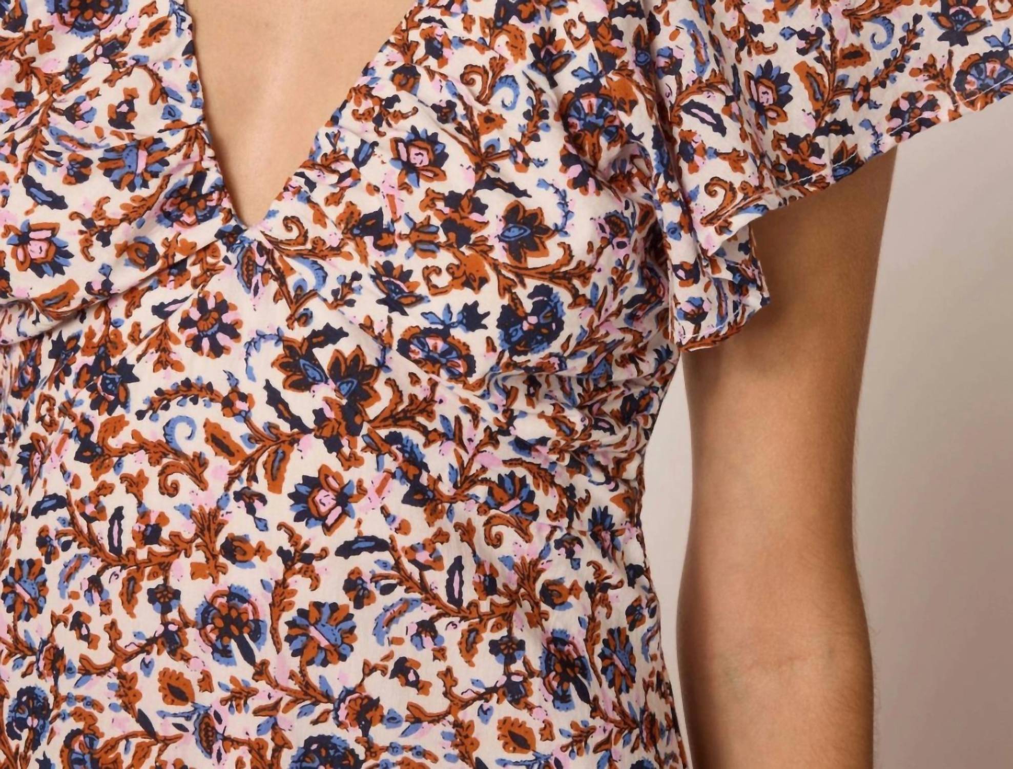 A maxi dress that is just as cute as it is comfortable. Introducing the Cleobella Briar Ankle Dress, an elegant choice in the chic Bellucci print. Crafted from 100% GOTS certified organic cotton, this maxi dress features a v-neckline and short flutter sleeves, embodying the boho-chic trend. The A-line silhouette offers a graceful flow, ideal for spring events or Thanksgiving gatherings. Made in India, it closes with a zip and is best cared for by hand washing.