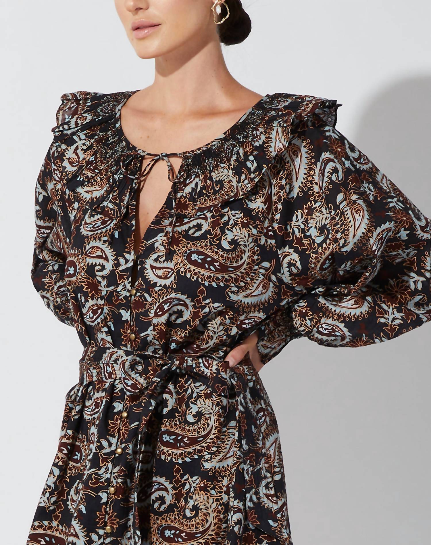 O tipo de vestido fácil e elegante que você vai usar durante toda a estação. O Vestido Curto Carolyn da Cleobella é uma adição charmosa ao seu guarda-roupa, oferecendo um estilo feminino e ousado. Confeccionado em 100% algodão orgânico mulmul com certificação GOTS, este vestido apresenta mangas longas com abertura elástica e decote franzido com detalhe de babados. Feito à mão eticamente na Índia, é perfeito para qualquer ocasião e vem com um cinto combinando para um toque de estilo. Os cuidados são simples, com instruções de lavagem à mão com água fria e secagem na horizontal, garantindo que esta peça em corte A permaneça linda. O vestido é prático de vestir e está disponível no tamanho AVA, pronto para ser combinado com acessórios para qualquer evento noturno de verão.