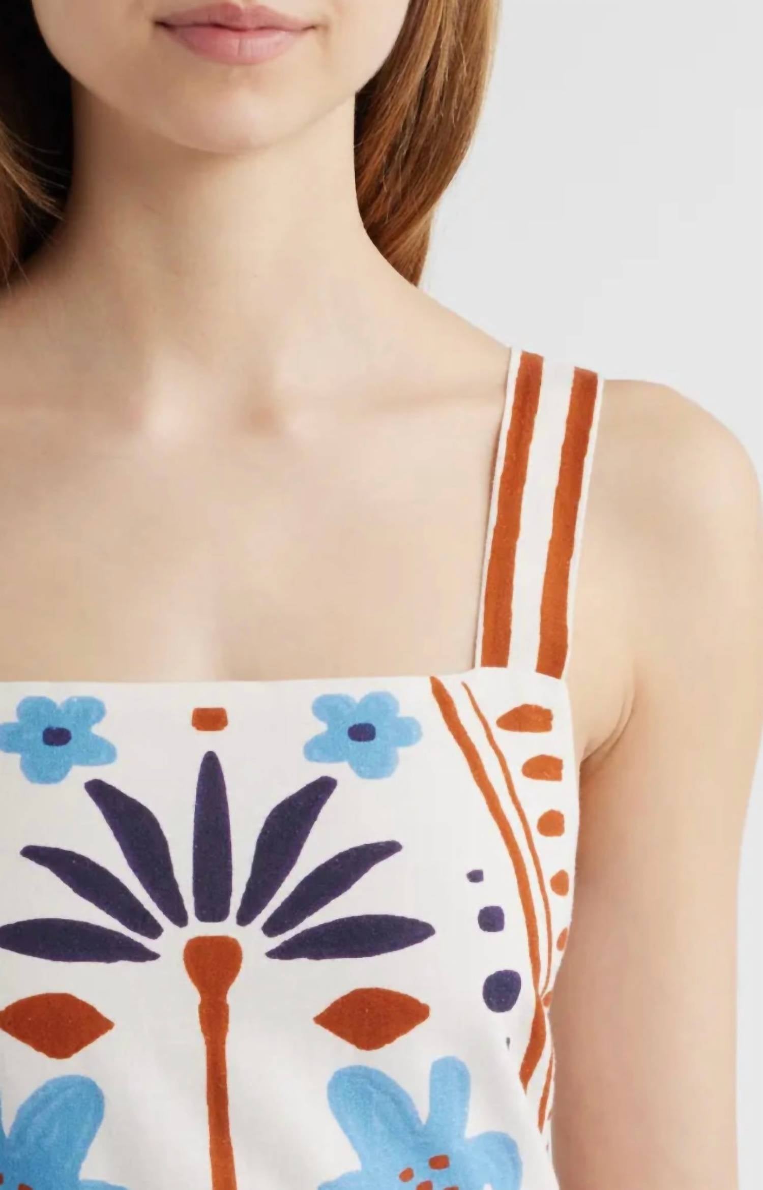 Ethically handmade boho chic essential from India crafted for sunny beach days. Made from a 70% cotton and 30% linen blend, offering comfort and breathability. Its stylish A-line silhouette is patterned and features a square neck with wide shoulder straps, along with a smocked back and convenient zip closure. For care, hand wash cold and lay flat to dry or opt for dry cleaning to preserve its vibrant multicolor design.