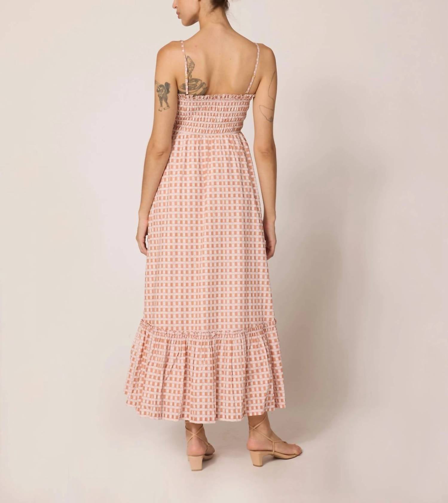 Style this maxi with your favorite statement necklace and sandals for the perfect look. The Magnolia Ankle Dress by Cleobella is a boho chic piece in Bellini Plaid, designed with spaghetti straps and a flattering square neckline. Made from 100% GOTS certified organic cotton poplin, this 51.5-inch long maxi dress is ethically handmade in India. Featuring an A-line silhouette and a pull-on closure, it's perfect for spring vacations. Care instructions: Hand wash and lay flat to dry.