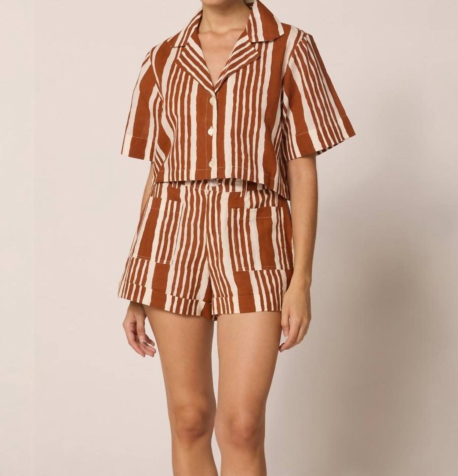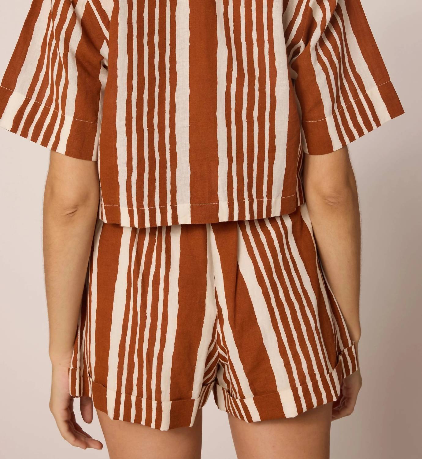 A cintura alta veio para ficar e nós amamos especialmente esse estilo curto. O short Niko da Cleobella é uma opção chique de cintura alta, perfeita para adicionar um toque sustentável ao seu guarda-roupa. Com uma mistura de 70% algodão e 30% linho, este short listrado respirável vem com um divertido design Vecchio Stripe. Com detalhes práticos como bolsos frontais e de debrum, passantes para cinto e fecho de botão e zíper, este short sem forro oferece estilo e funcionalidade. Feito para fácil cuidado, você pode lavar a seco ou à mão com água fria e secar na horizontal. Ideal para férias de verão e festas de Ação de Graças, este short tem o tamanho original e é importado.