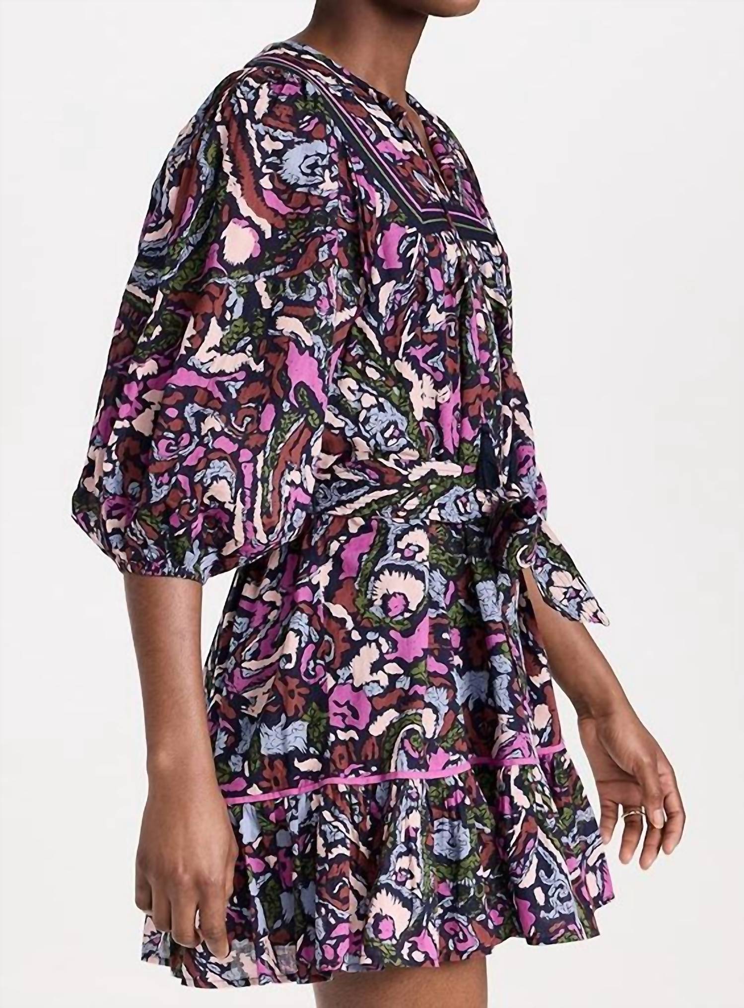 The perfect length dress does exist. Meet the Rafaela Mini Dress by Cleobella, perfect for a vacation in boho chic style. This Corozal-patterned piece boasts three-quarter sleeves made from organic cotton mulmul, ensuring both comfort and ethical fashion. With a playful silhouette accentuated by a tiered skirt and contrast yoke, it offers a customizable fit thanks to the quilted sash and tie closure. Care for this women’s shift dress with a simple hand wash, and embrace its charm in the warmer summer season.