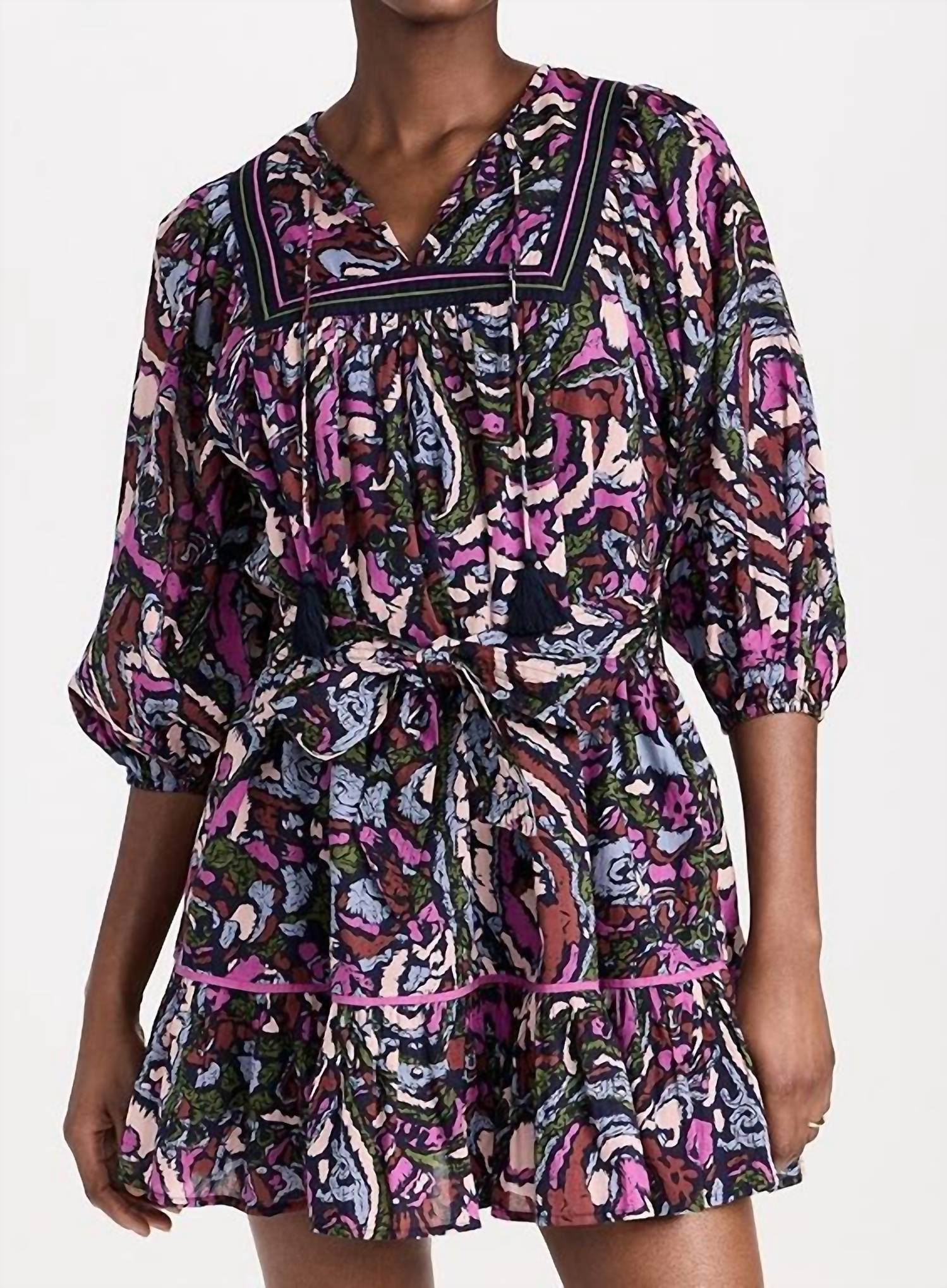 Meet the Rafaela Mini Dress by Cleobella, perfect for a vacation in boho chic style. This Corozal-patterned piece boasts three-quarter sleeves made from organic cotton mulmul, ensuring both comfort and ethical fashion. With a playful silhouette accentuated by a tiered skirt and contrast yoke, it offers a customizable fit thanks to the quilted sash and tie closure. Care for this women’s shift dress with a simple hand wash, and embrace its charm in the warmer summer season.