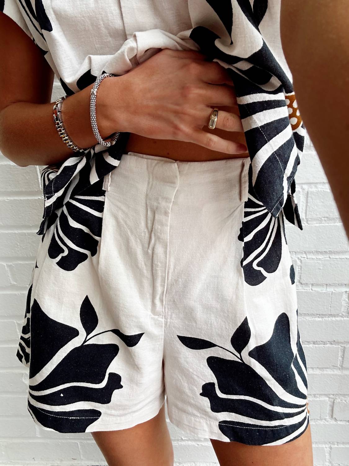 High-waist is here to stay and we especially love this style short. Elevate your sustainable wardrobe with the Cleobella Sebastian Short in an eye-catching Atropa Print. Ethically handmade in India, these shorts are crafted from a breathable 70% cotton and 30% linen blend, making them perfect for warm weather outings. Featuring welt pockets and belt loops, they combine practicality with style. Care instructions include hand washing to maintain their quality. Ana, who stands at 5'9.5", is wearing a size S. Ideal for vacations or a chic addition to your Spring look, pair them with the Ama or Selene Blouse for a coordinated ensemble.