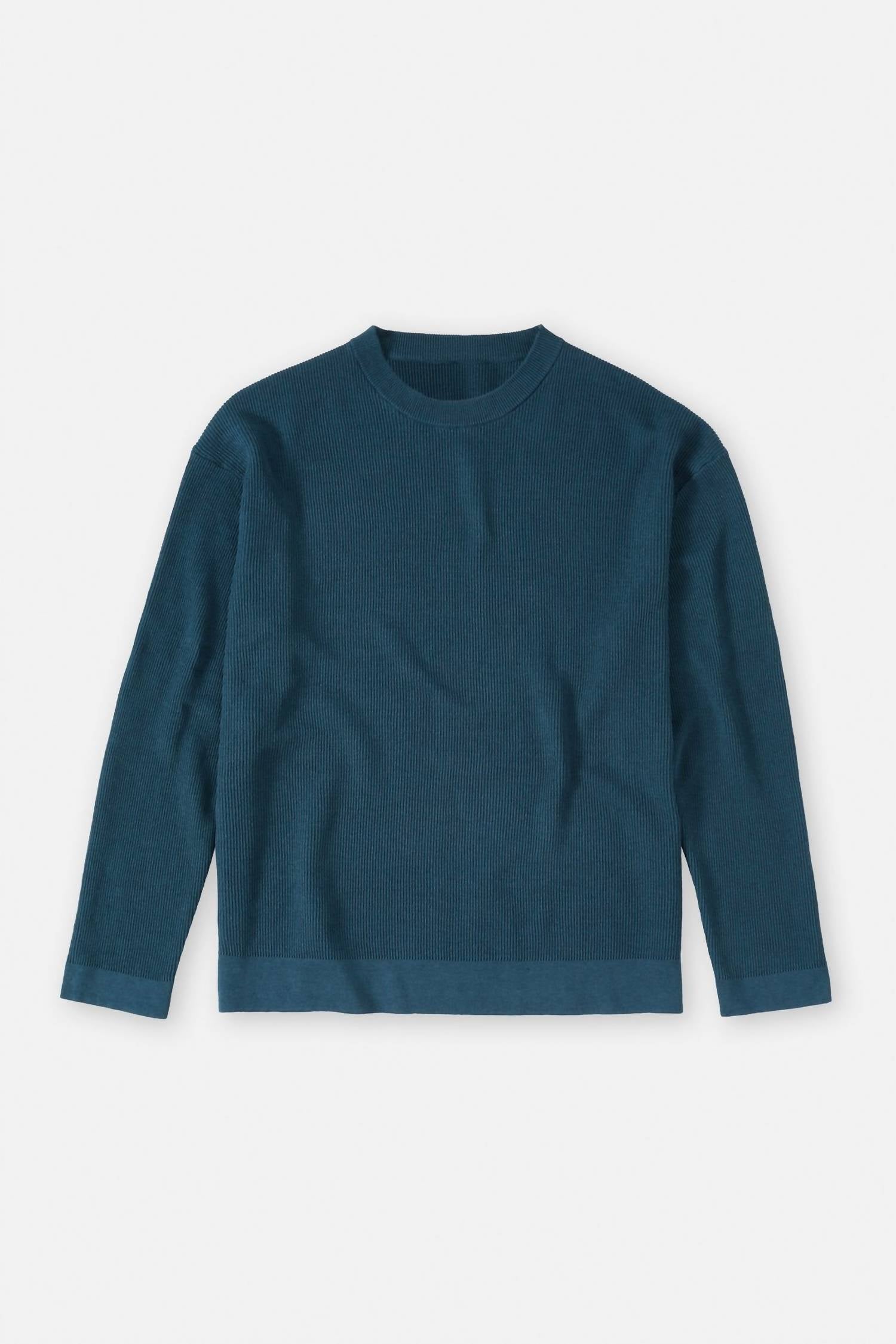 Introducing the Knitted Sweater by CLOSED, a refined addition to any wardrobe in the sophisticated Midnight Lake hue. Designed with long sleeves, this sweater showcases a premium blend of 68% organic cotton and 32% organic linen for a luxurious textured feel. It features a crewneck with a pull-on closure and boasts slightly overlapping shoulders and side slits, enhancing its minimalist and travel-ready appeal. For care, it's machine washable, making it both stylish and practical for the modern man.