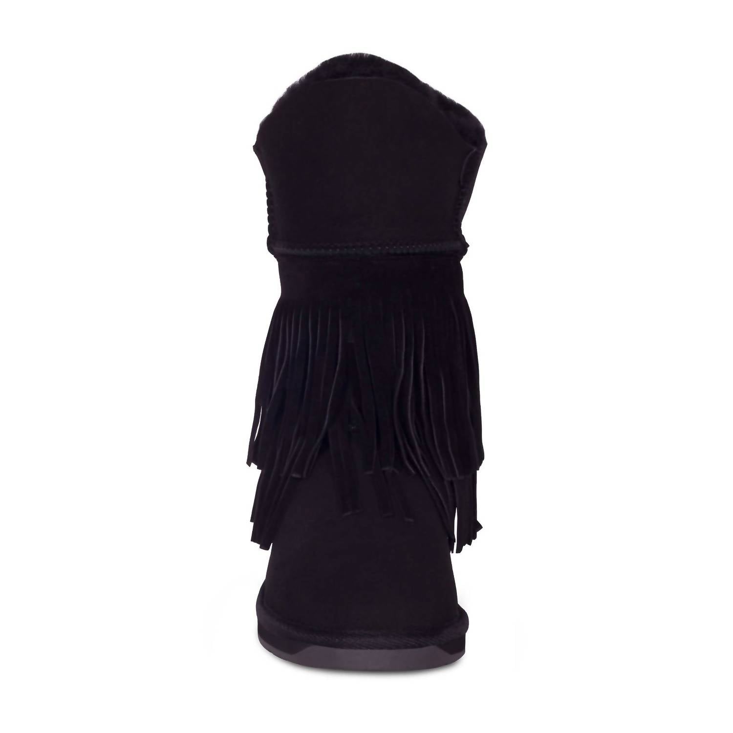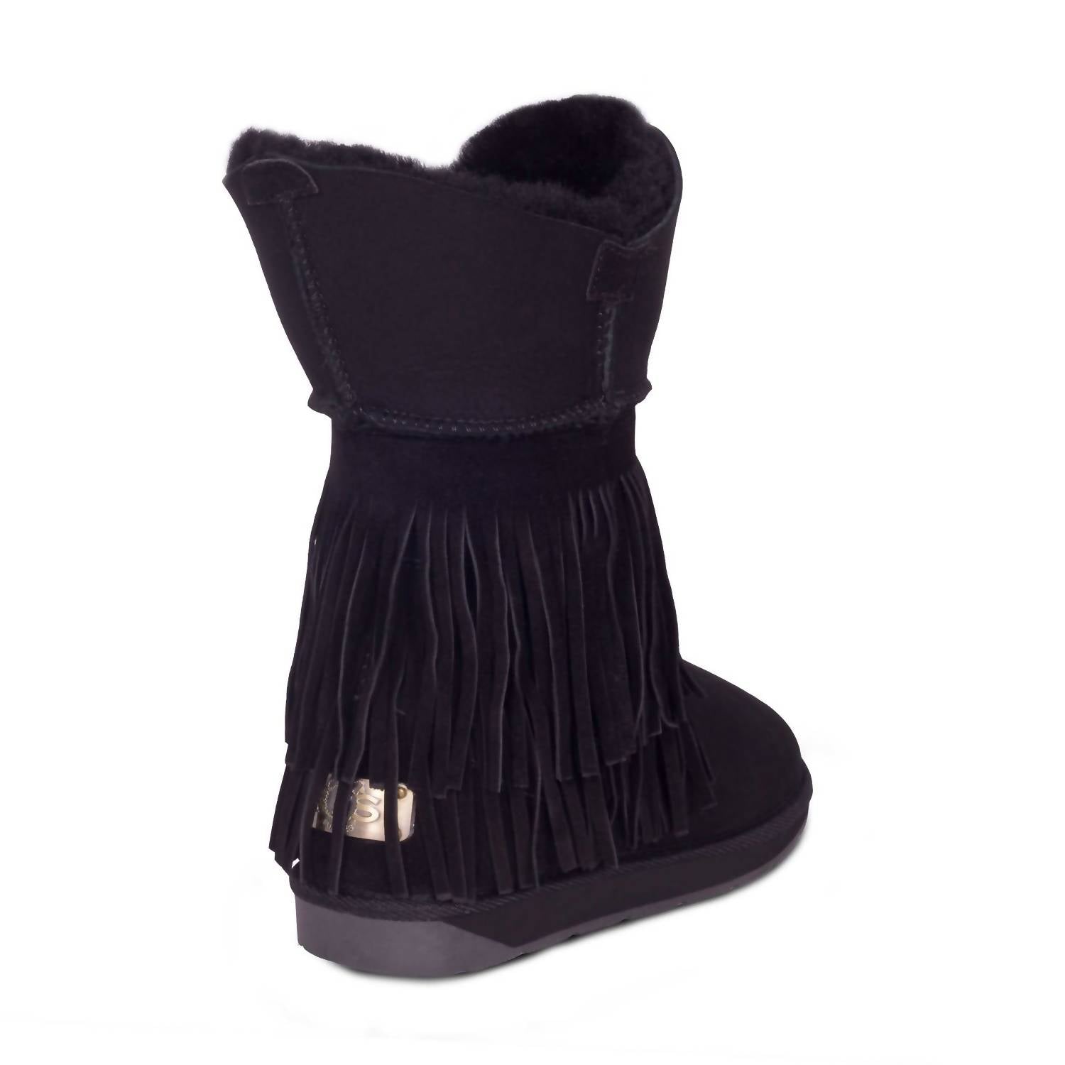 Apresentamos a Bota Feminina Clássica de Pele de Carneiro com Franjas da CLOUD NINE, uma escolha sofisticada para o inverno. Esta bota de cano alto, disponível na cor preta, ostenta um interior luxuoso com forro 100% em pele de carneiro genuína e um cabedal resistente em pele de carneiro dupla face para conforto e durabilidade. O solado de EVA/TPR da bota garante durabilidade e aderência em condições climáticas adversas. Experimente calor e estilo incomparáveis com esta peça essencial de inverno.