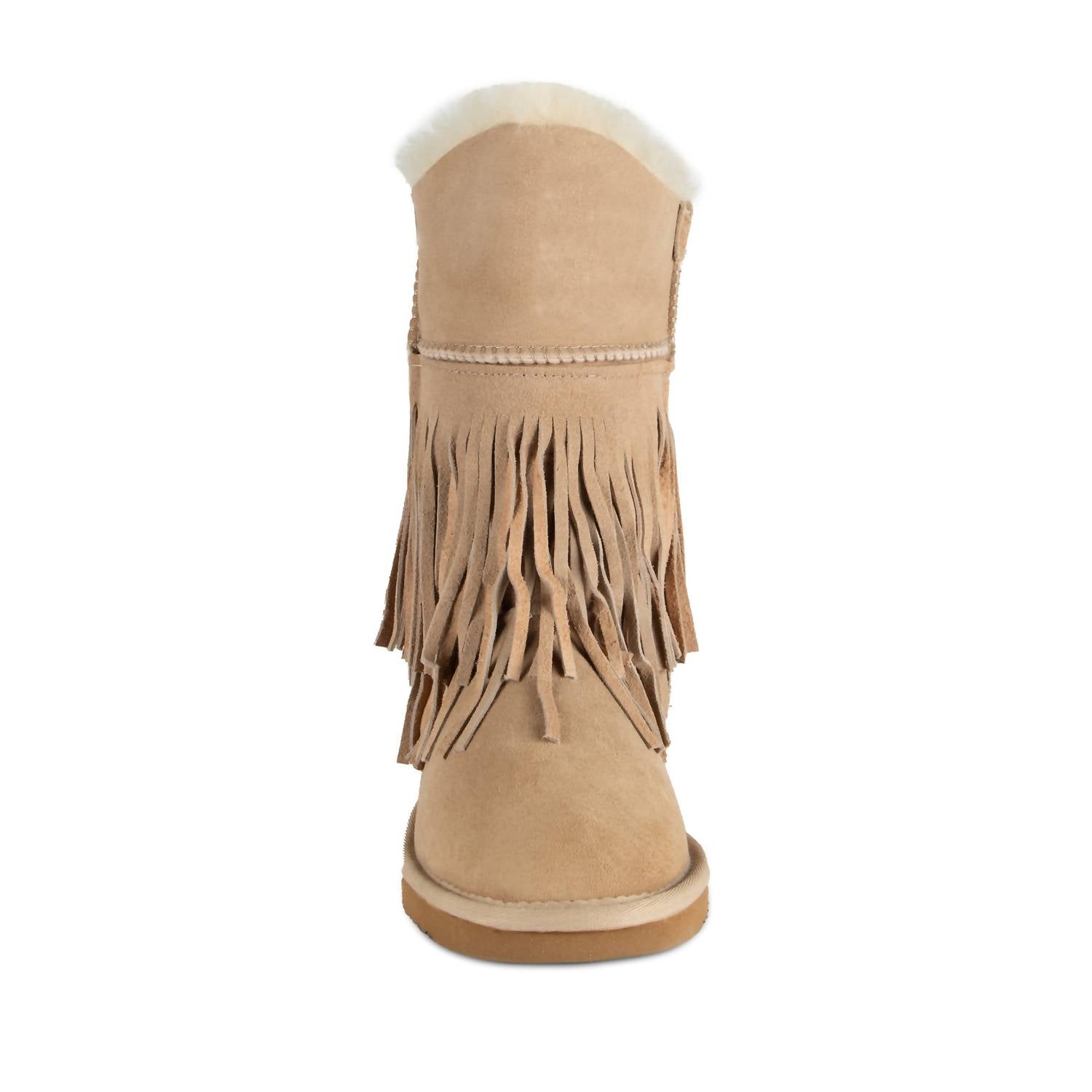 Aposte no conforto e no estilo com a Bota Feminina Classic Fringed Sheepskin da CLOUD NINE. Estas botas de cano alto, na cor areia, apresentam um forro luxuoso em pele de carneiro 100% genuína, garantindo aquecimento e maciez a cada passo. O cabedal é confeccionado em pele de carneiro dupla face, enquanto o solado durável combina EVA com TPR para tração e flexibilidade superiores. Perfeitas para enfrentar o frio, estas botas combinam praticidade com um design atemporal.