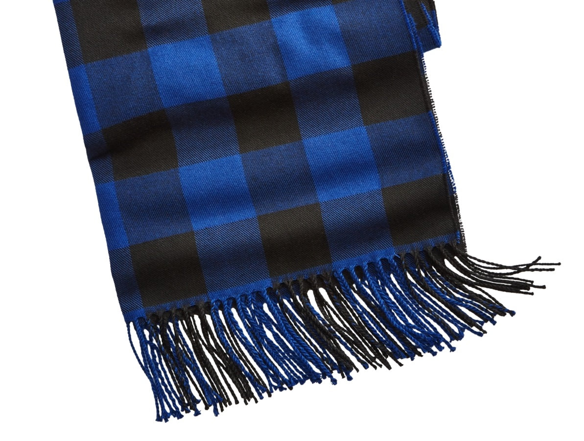 Dê um toque de estilo ao seu visual para o frio com o ousado padrão xadrez de búfalo deste cachecol aconchegante com franjas da Club Room|