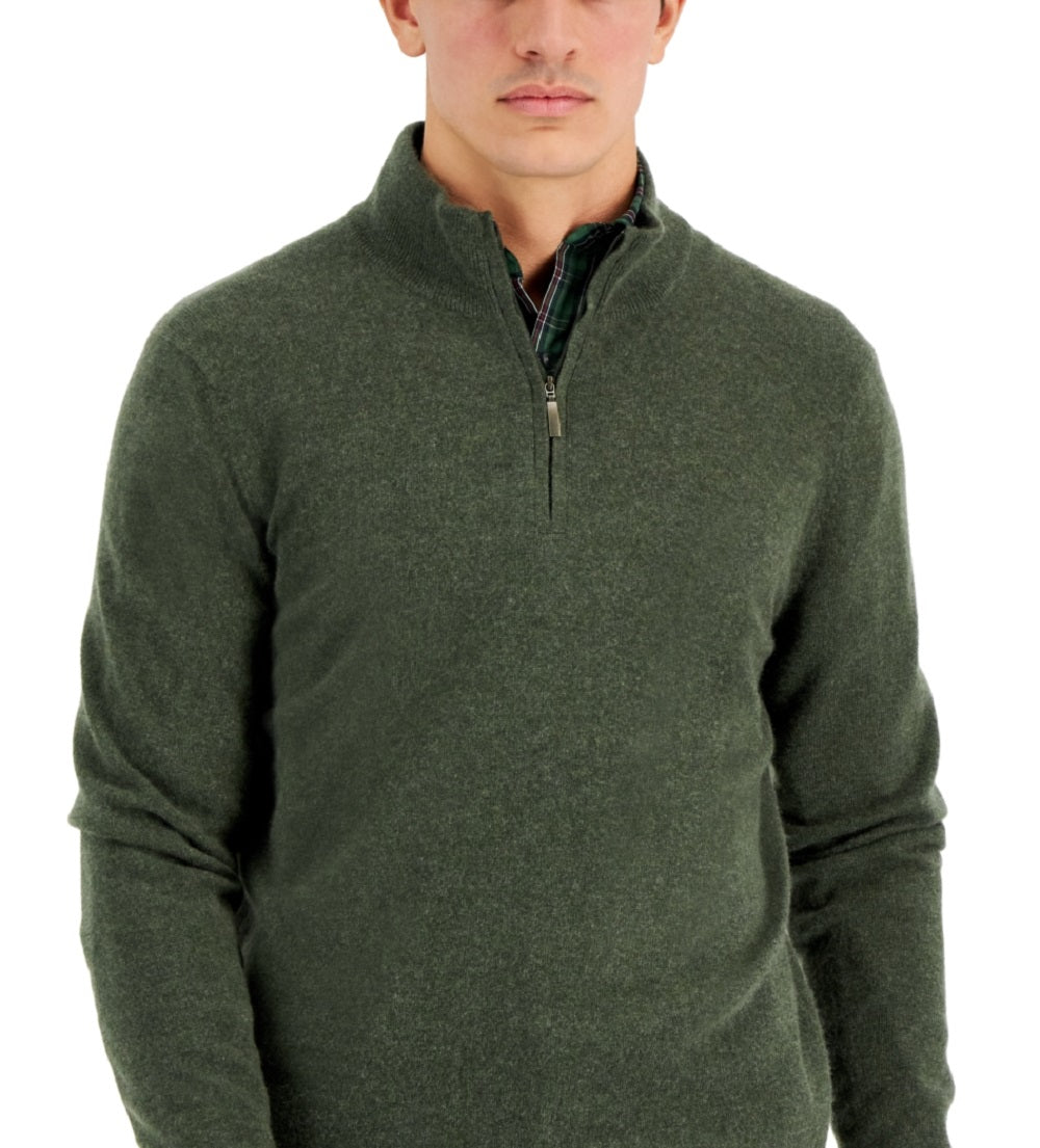 Ask a question about Suéter de cashmere masculino Club Room com zíper de um quarto, verde, tamanho grande
