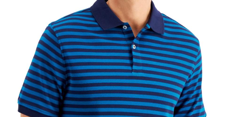 Camiseta polo elástica listrada com intertravamento e ajuste clássico masculina Club Room, azul, tamanho pequeno