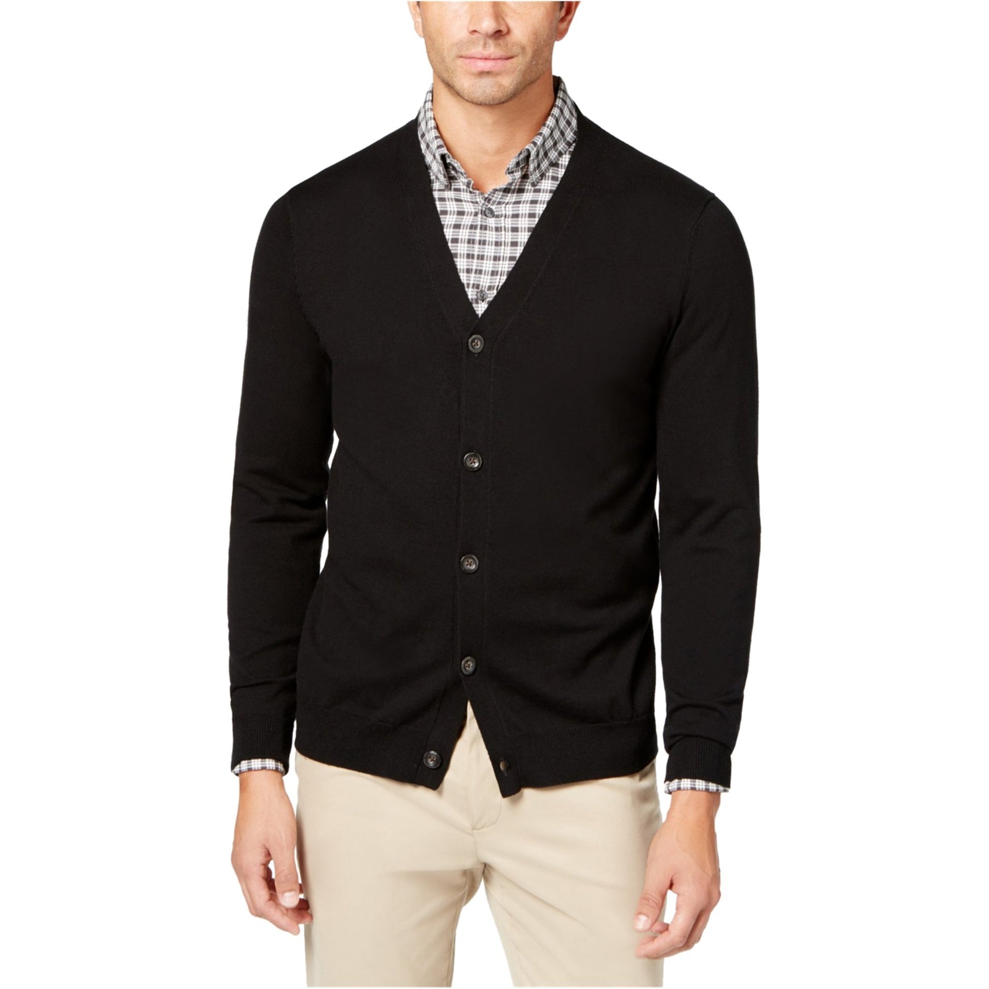 Cardigan masculino de malha com decote em V, preto, tamanho XXX-G