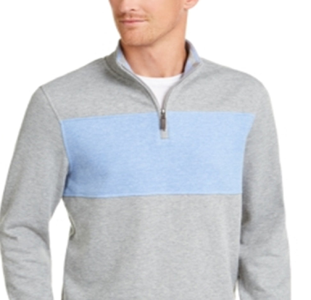 Suéter masculino Club Room com zíper de um quarto e canelado francês, cinza, tamanho extragrande