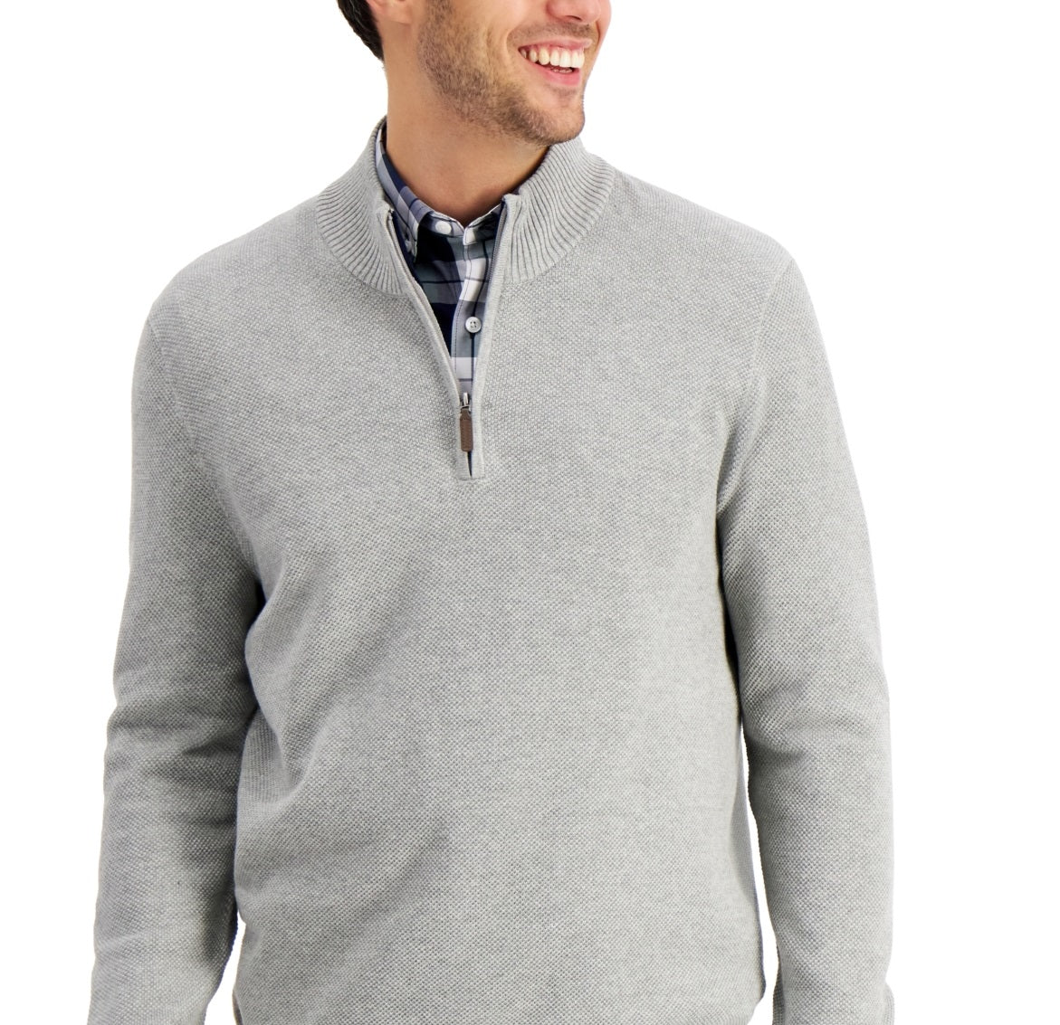 Suéter de algodão texturizado com zíper de um quarto masculino Club Room, cinza, tamanho grande