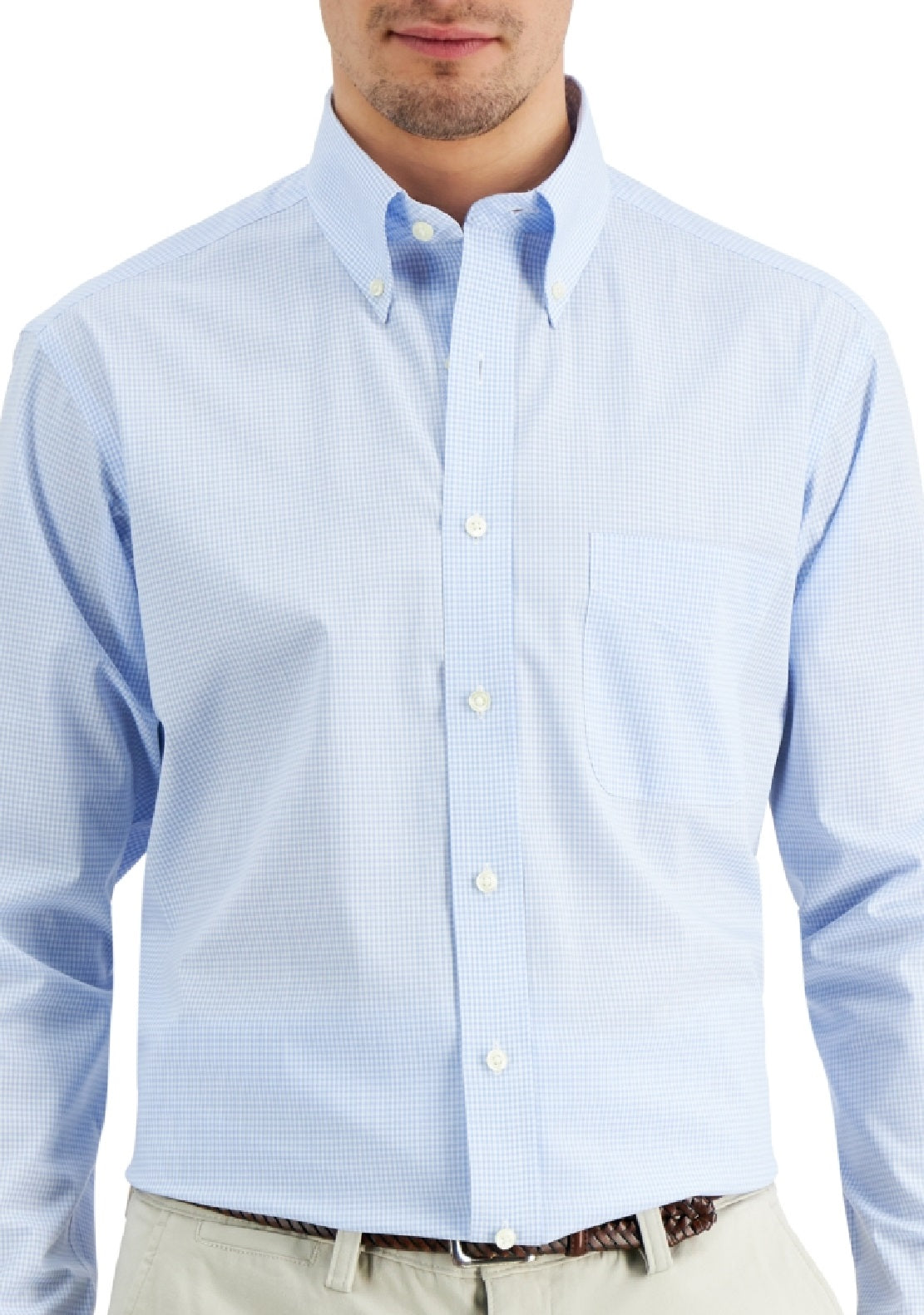 Camisa social masculina Club Room Regular Fit de algodão xadrez mini azul tamanho 15x32x33