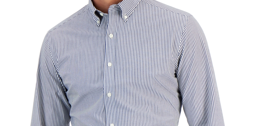 Projetada com tecido elástico em quatro direções que acompanha seus movimentos ao longo do dia | A camisa social listrada de Bengala da Club Room pode ser usada por dentro ou por fora, dependendo do clima do ambiente. | Caimento justo | Gola abotoada | Fecho de botão | Mangas compridas | Estampa listrada
