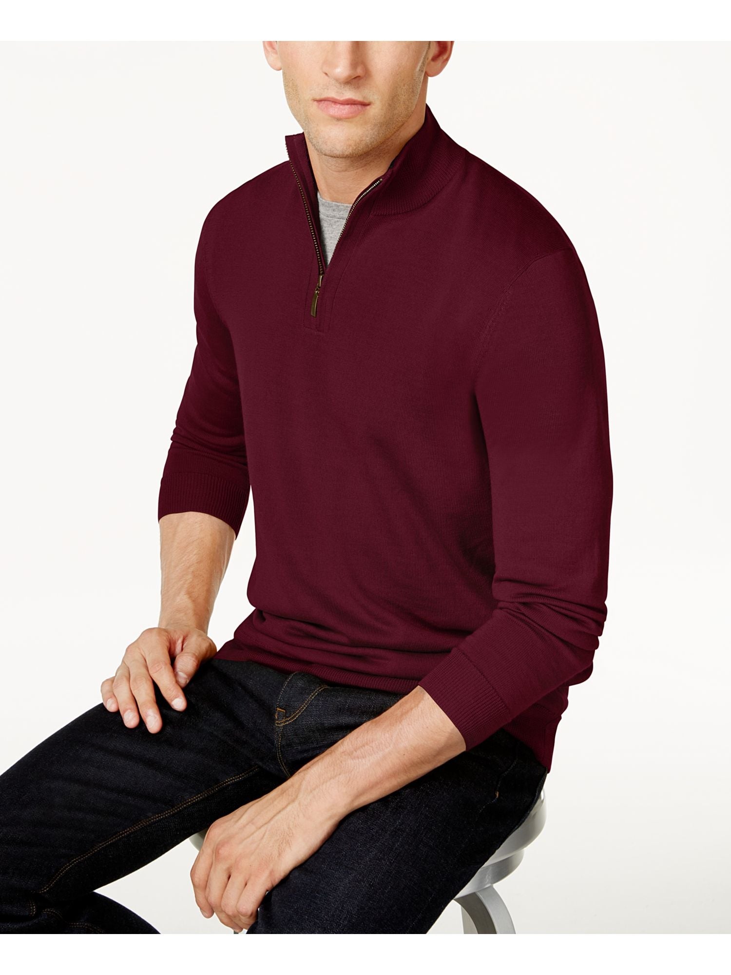 Suéter masculino Clubroom marrom manga comprida com zíper de um quarto vermelho ameixa tamanho XX-G