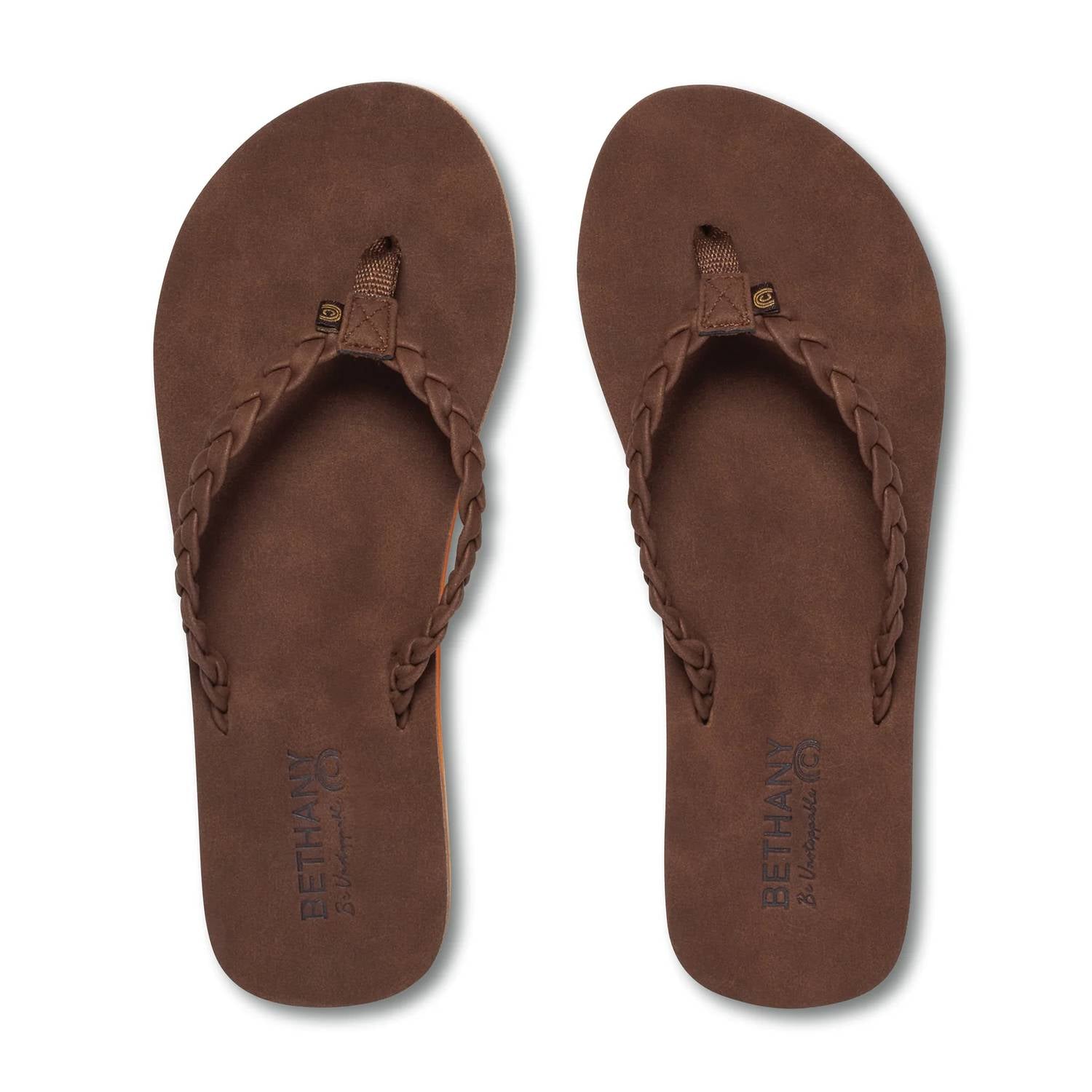 Vestidos esvoaçantes, calças cropped e até macacões... esta sandália combina com todos eles! Apresentamos a Sandália Feminina Bethany Braided Pacifica da Cobian, uma mistura chique de estilo surfista casual e conforto incomparável em um tom chocolate intenso. Projetadas com uma confortável tira de couro sintético trançado e um solado superior de couro sintético, estas sandálias oferecem suporte total ao arco do pé para mantê-la confortável o dia todo. O design aberto assenta num salto plano, com sola de EVA da Cobian e o inspirador logotipo da Bethany na palmilha "Be Unstoppable". Estas sandálias elegantes são perfeitas para mulheres adultas que valorizam moda e funcionalidade.