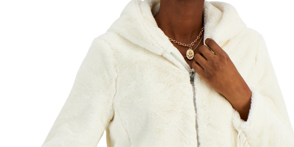 Casaco sintético com capuz e franjas Coffeeshop Junior, branco, tamanho médio