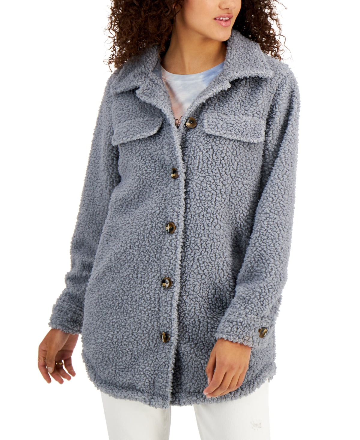 Em fleece ultramacio e aconchegante | esta jaqueta inspirada em camisas da CoffeeShop ajuda a manter você aquecido durante toda a estação. | Aproximadamente 32 de comprimento do centro das costas até a bainha | Gola pontuda; fechos de botão frontais | Dois bolsos falsos com aba no peito | Forrado | Exterior; fleece sherpa de poliéster; forro; poliéster