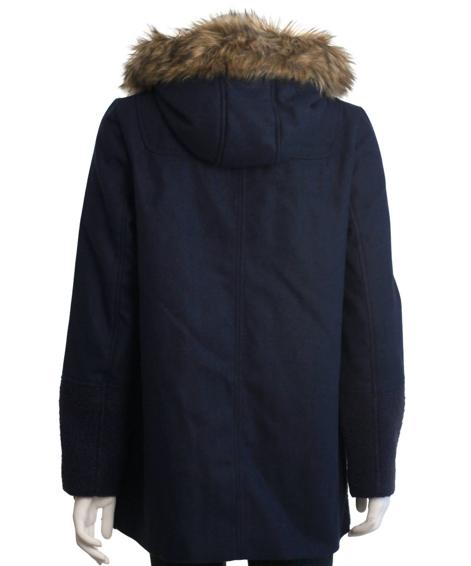 Coffeeshop - Women's Hooded Toggle Coat With Faux Fur Trim